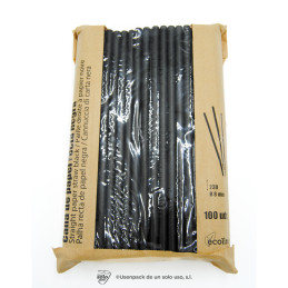 CAÑITA PAPEL CUCHARA NEGRA_BLANCA 8x200mm 1x100