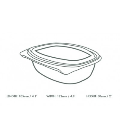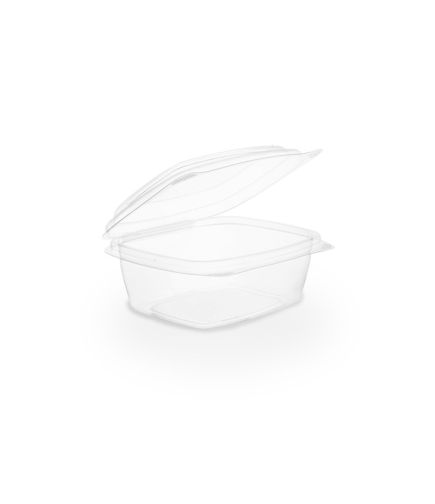 Envase transparente curvo deli. Su tapa con bisagras integrada tiene un gran sellado. Presentación perfecta para barras de ensaladas: sirva ensaladas frías, deli deli o frutas. Fabricado con PLA, un material renovable elaborado a partir de plantas. Despejado para visibilidad.