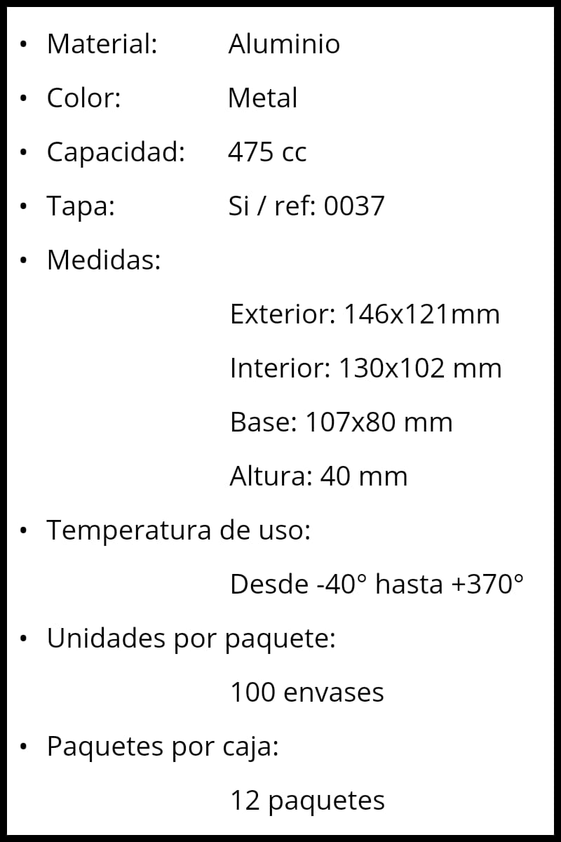ENVASE ALUM. RECTANG . 475cc 1x100
